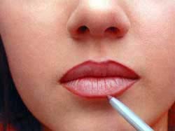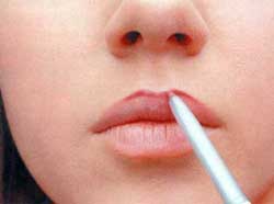 • Для того чтобы добиться безупречного макияжа губ, растушуйте видимые границы помады и карандаша при помощи кисти. Предварительно нанесите на кисть помаду, затем при помощи нее смягчите слишком резкие переходы линии карандаша.